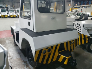 The NMC-Wollard Model 100 aircraft tug/ pushback tractor has a 10,000 lbs DBP, a Gasoline engine, and a fully enclosed cab.
