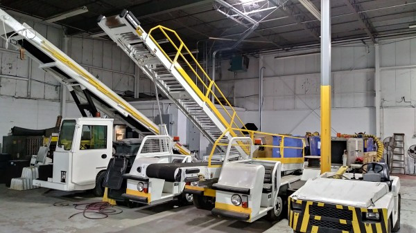 Used AMSS TC-888 diesel aircraft belt loader. The service reach is 30 to 172- inches. Freshly painted.