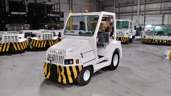 Used 2002 Harlan HTLPAG 80 aircraft tug. Newly rebuilt engine and transmission, zero time. New radiator, gearbox, brakes, and master cylinder. The HTLPAG 80 is rated for 8,000 lbs DBP. Freshly painted and ready to ship!