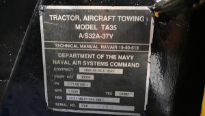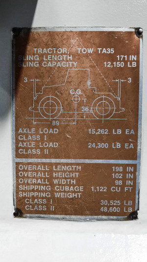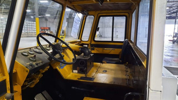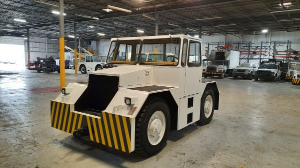 Used 1984 Simmons-Rand TA35 aircraft pushback tractor. Standard four-wheel drive (4WD). 20,000-lbs DBP (towable weight 200,000-lbs). Cummins 6 BT-5.9L Diesel. Tire size 12.00R24. Fully enclosed, heated cab. Standard pintle hook hitch on front and rear.