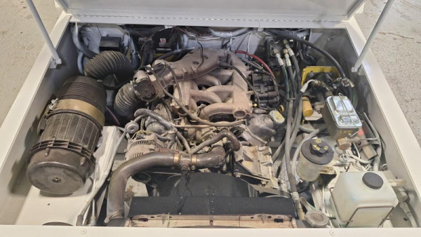 Used Trowin Industries Mark III Low Profile Tow Tractor. Equipped with a V-6 Ford gasoline engine. It also has a 6,000 DBP rated to move 60,000-lbs of weight. Your driver will also be protected from the elements as it also comes with a fully enclosed cab.